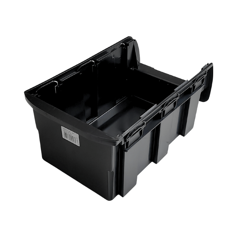 Pojemnik warsztatowy Compact nr 4 w kolorze czarnym to uniwersalny pojemnik magazynowy o profesjonalnym wyglądzie, przeznaczony do uporządkowanego przechowywania w warsztacie, magazynie i garażu.