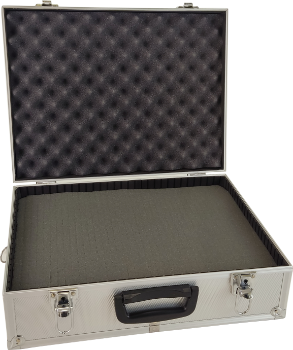 Duża walizka aluminiowa z wypełnieniem piankowym