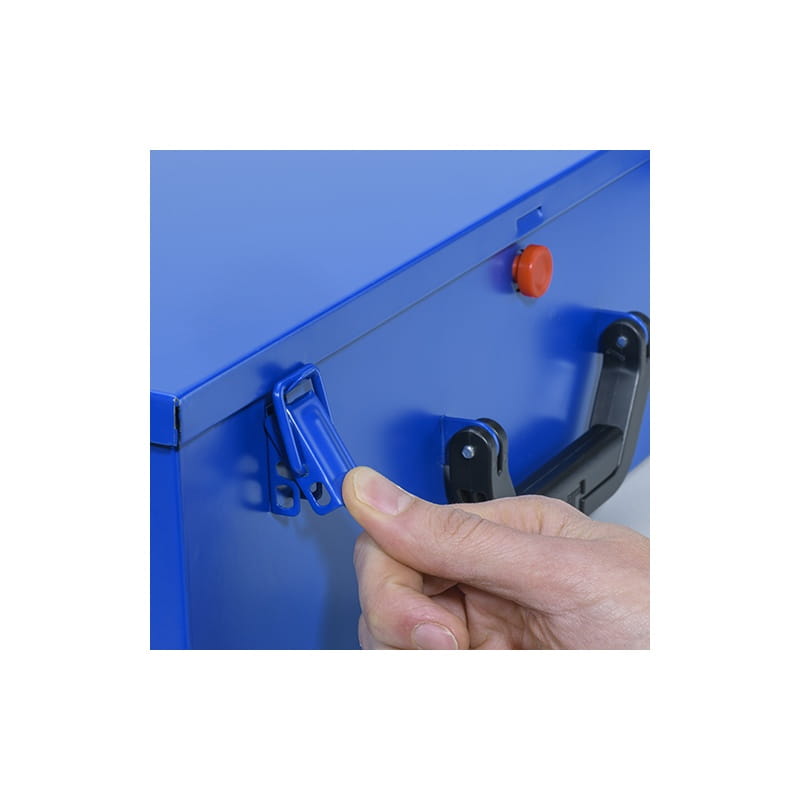 Kaseta metalowa Euro Plus o wymiarach 440x370x135 mm to solidny wybór dla osób potrzebujących niezawodnego systemu przechowywania i transportu drobnych akcesoriów. Wykonana z trwałej stali i wykończona proszkowo na ciemnoniebieski kolor, kaseta oferuje nie tylko estetyczny wygląd, ale także wysoką odporność na uszkodzenia. Dzięki piankowej wkładce wewnątrz pokrywy, zawartość jest zawsze bezpieczna, nawet podczas przenoszenia.