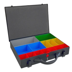 Kaseta walizka metalowa z 14 pojemnikami 390x280x70 mm