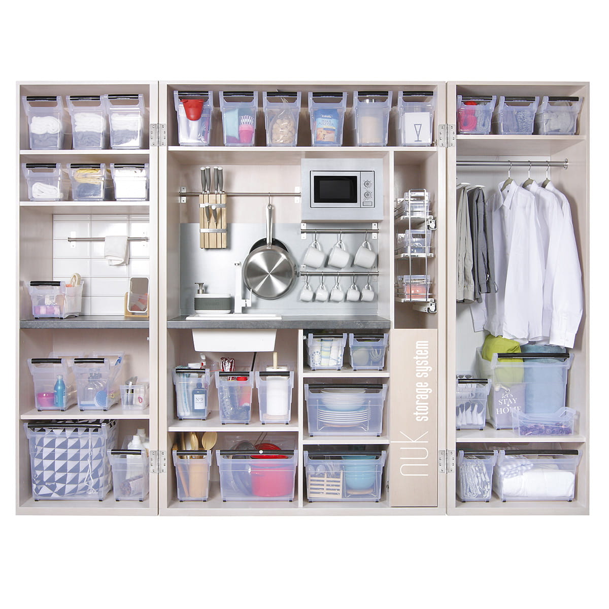 Nasz inteligentny i efektywny system przechowywania "na miarę" wprowadza dyscyplinę w utrzymaniu codziennego porządku w pralni, garderobie, kuchni, łazience czy dziecięcym pokoju.