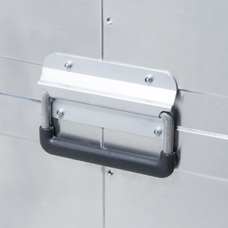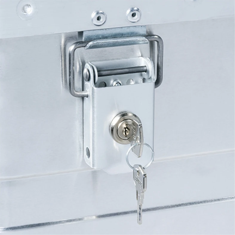 Lekka, bardzo stabilna skrzynia z uchwytami sprężynowymi. Odporna na temperaturę, warunki atmosferyczne oraz na korozję a dodatkowo uszczelka gumowa w górnej części skrzyni zapewnia ochronę przed deszczem. Dno oraz górna cześć skrzyni wzmocniona profilem aluminiowym.