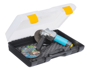 Skrzynia transportowa przystosowana do bezpiecznego transportu elektronarzędzi, najważniejszym czynnikiem jest wykorzystany materiał czyli tworzywo sztuczne wysokiej jakości które bardzo skutecznie chroni przez uszkodzeniami mechanicznymi. Wnętrze skrzyni wypełnione jest pianką której zadaniem jest tłumienie drgań oraz ochrona przed obijaniem się sprzętu. Skrzynie zamyka się na 2 klipsy umieszczone na froncie, do bezpiecznego przenoszenia skrzynia wyposażona jest w uchwyt.