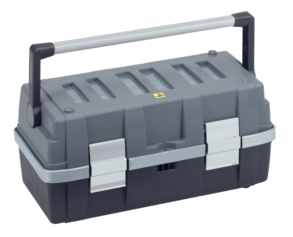 Solidna i wytrzymała skrzynia narzędziowa, dzięki wykorzystaniu wysokiej jakości materiału sztucznego oraz zwartej budowie skrzynie tego typu cechują się dużą wytrzymałością na różnego rodzaju czynniki zewnętrzne. Skrzynia zamykana jest na dwa duże aluminiowe klipsy, istnieje również możliwość zamknięcia na standardową kłódkę. We wnętrzu znajdziemy poręczną wyciąganą kuwetę podzieloną na kilka przegród oraz 3 wewnętrzne zamykane organizery, dokładnie przyjrzeć możemy się na filmie który zawarty jest w opisie. Do przenoszenia służy ergonomiczna aluminiowa rączka, dodatkowym atutem jest możliwość szatblowania skrzyń.