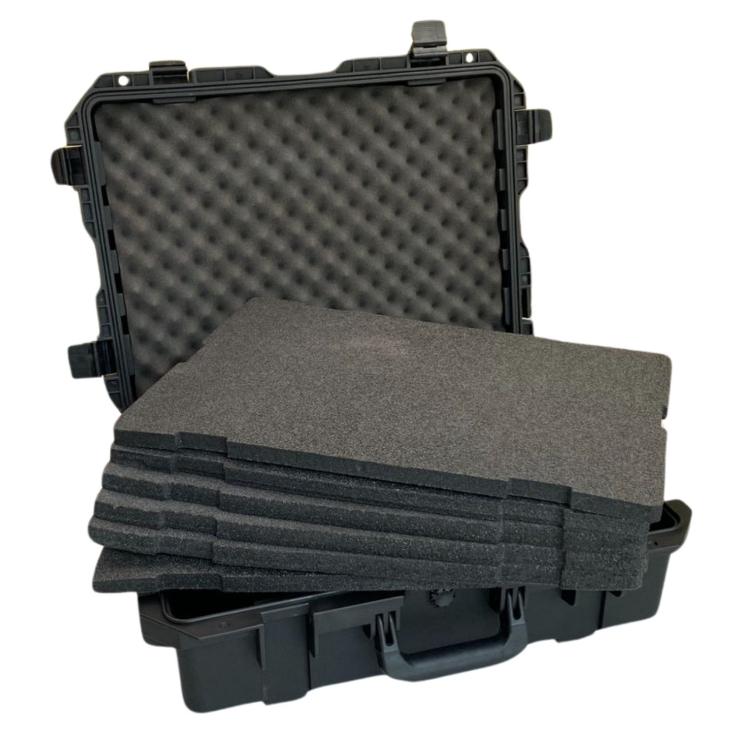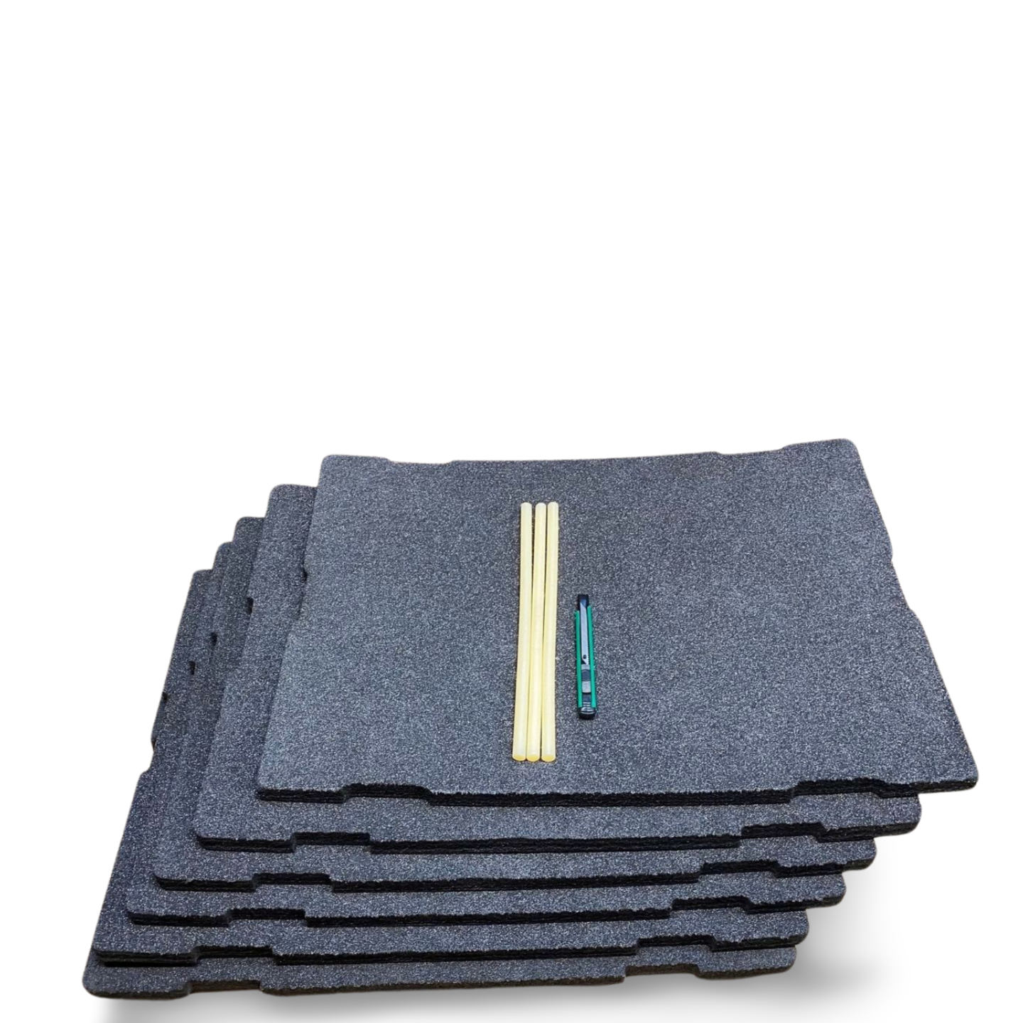 - W zestawie 6 warstw twardej pianki PE do samodzielnego dostosowania (klej+nożyk) oraz falista miękka pianka do wieka.