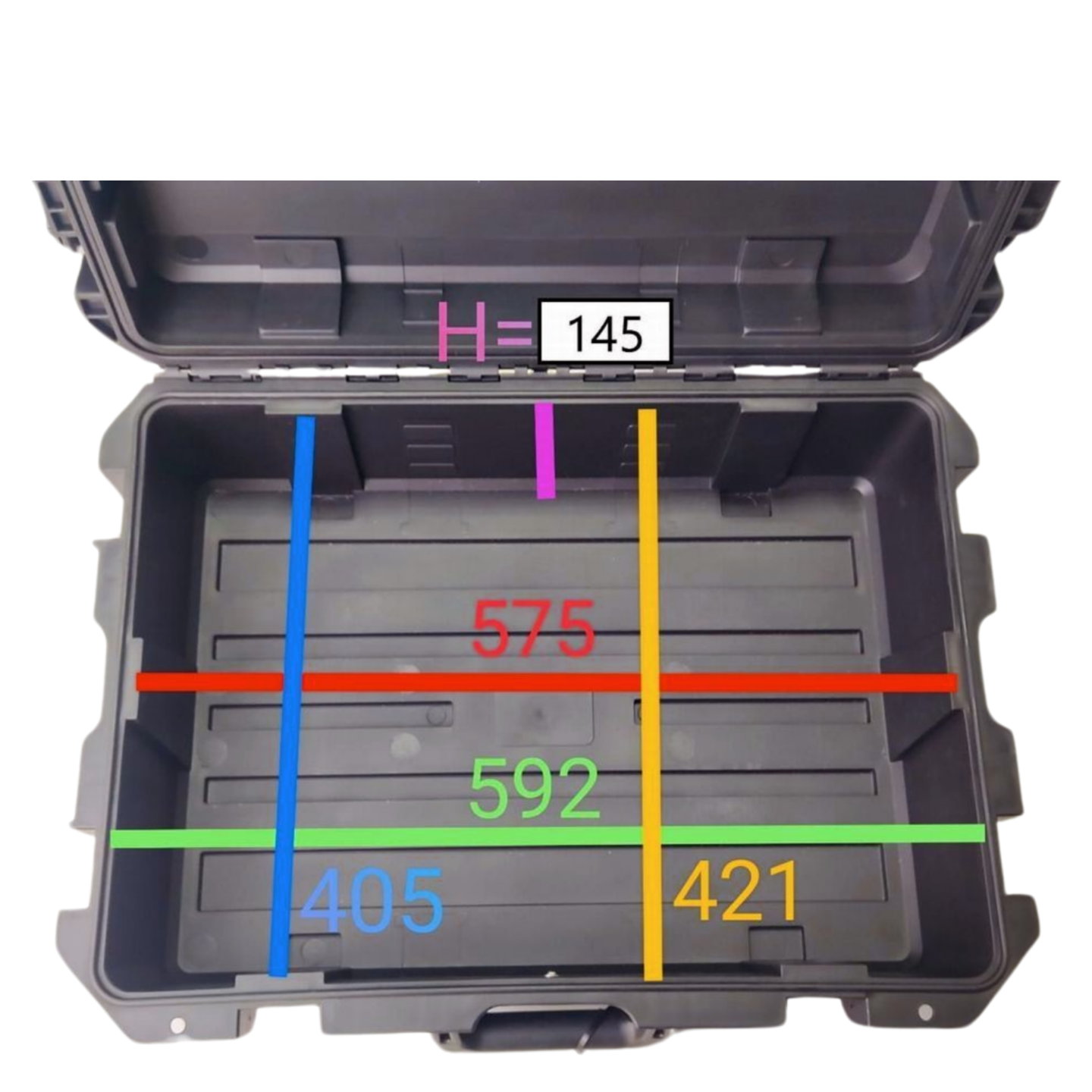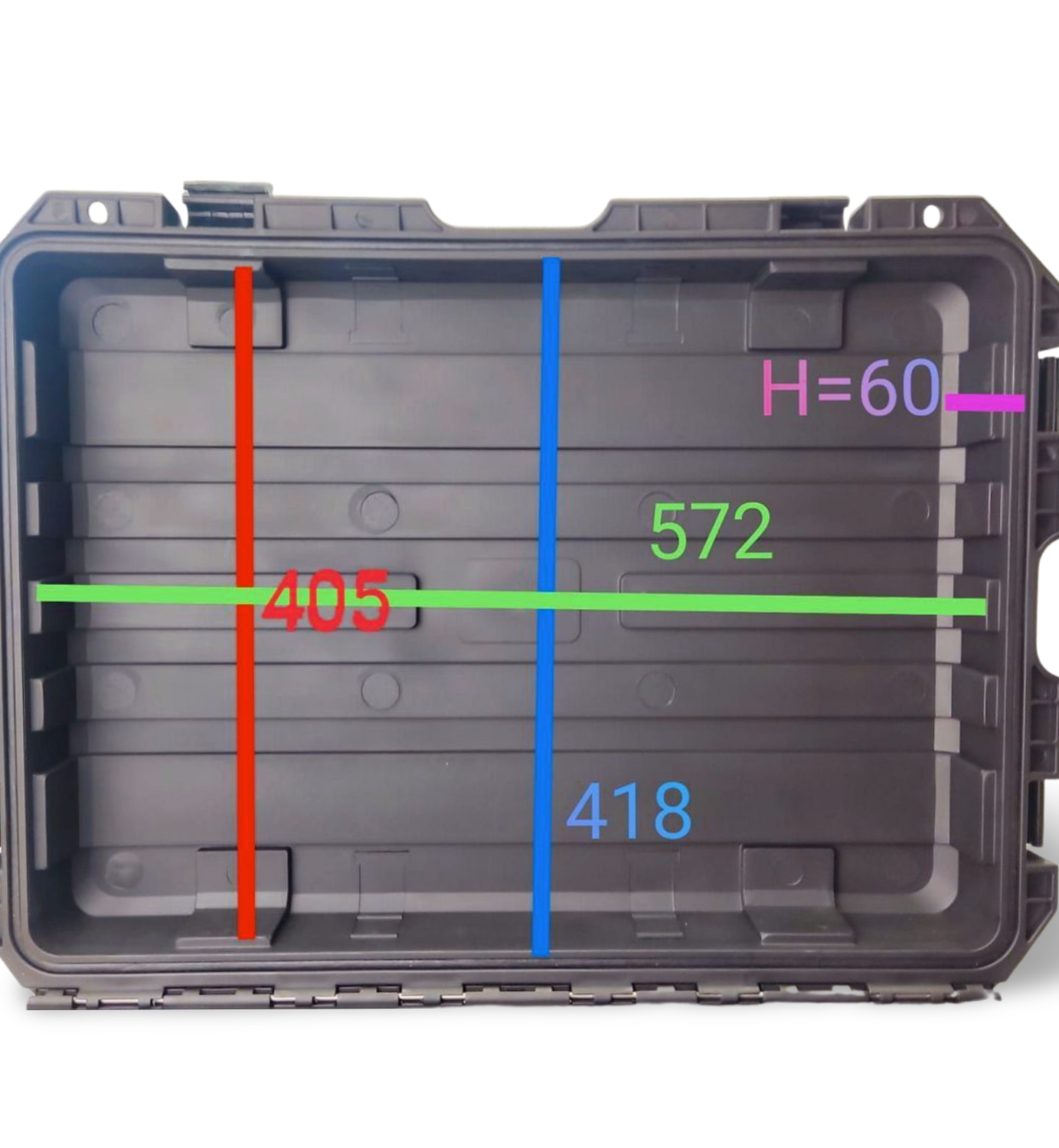 - Wymiar wewnętrzny wieko 575x410x62 mm