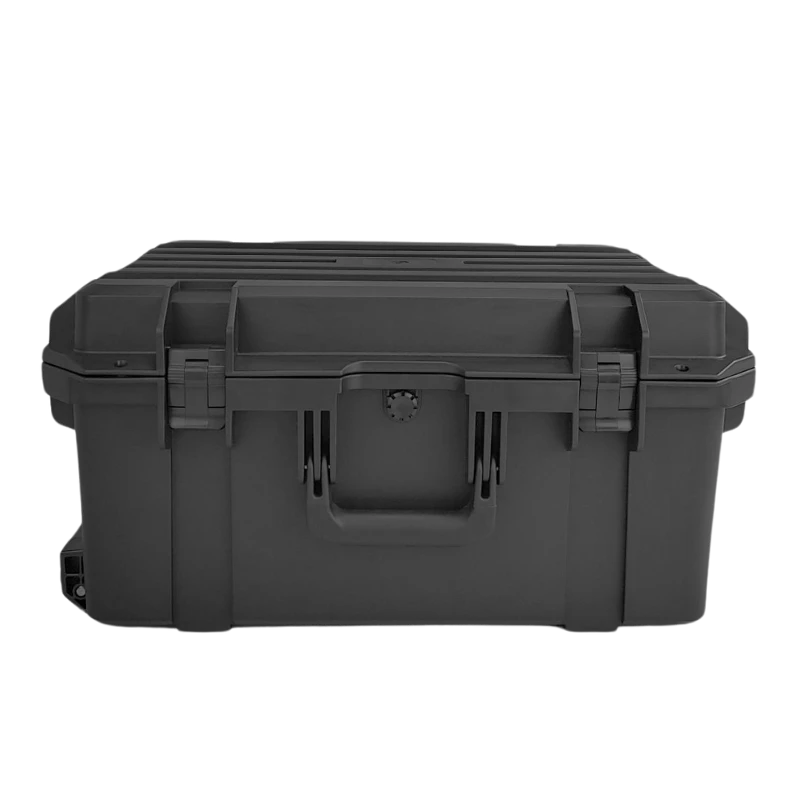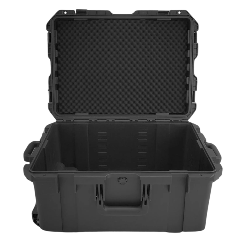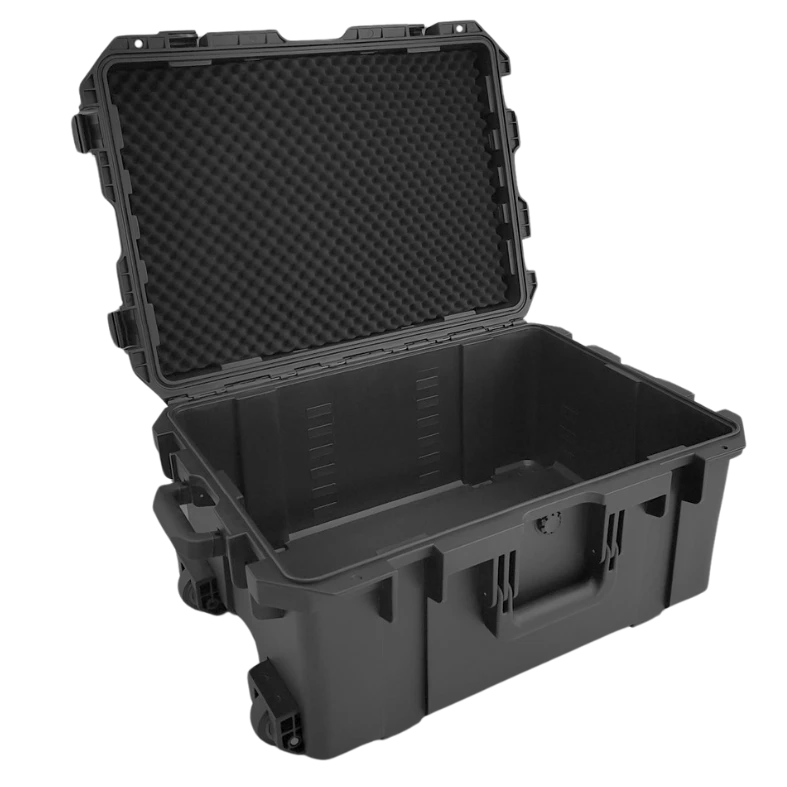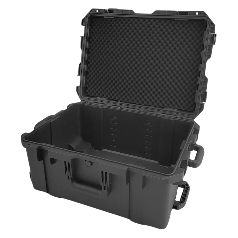 Walizka hermetyczna z kółkami 665x490x330 mm to profesjonalna walizka transportowa stworzona do bezpiecznego przewożenia dużych i ciężkich urządzeń. Dzięki solidnej konstrukcji, wysokiej odporności na wodę i kurz oraz wygodnej rączce teleskopowej, ta walizka wodoodporna doskonale sprawdza się w wymagających warunkach. Wnętrze wyposażone w piankę falistą zapewnia dodatkową ochronę, co czyni ją idealną jako walizka na sprzęt fotograficzny, narzędzia lub elektronikę.