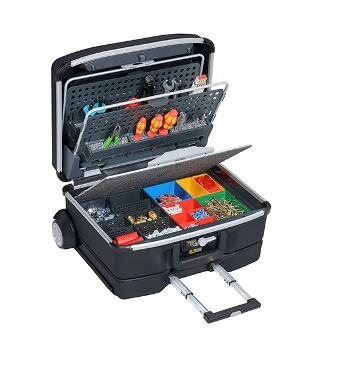Niezwykle wytrzymała walizka serwisowa ProServe, konstrukcja wykonana z użyciem poliwęglanu, aluminium oraz tworzywa sztucznego tworzy całość o bardzo profesjonalnym wyglądzie. W walizce zastosowano aluminiową ramę dla poprawy wytrzymałości oraz sztywności, w zestawie znajdują się kółka oraz ergonomiczna rękojeść z regulacją wysokości. Wewnątrz walizki znajdziemy szereg różnego rodzaju schowków na narzędzia, ogrom miejsca zadowoli nawet najbardziej wymagających klientów.