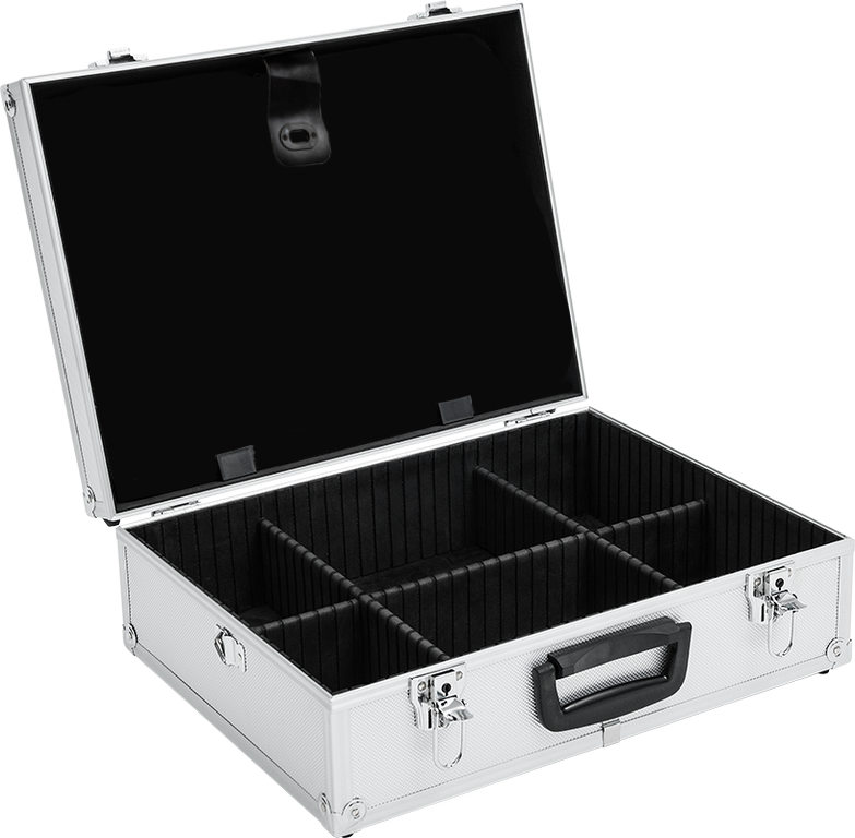 430x310x115 mm/413x295x102 mm- materiały: aluminium, płyta drewniana.