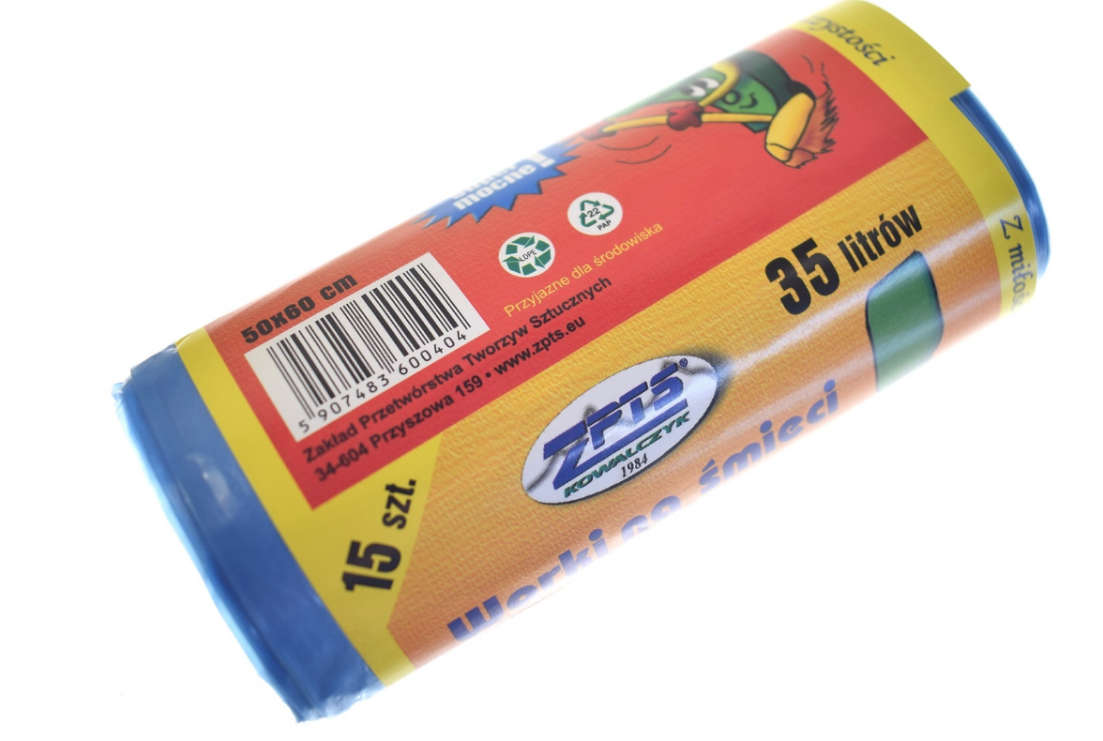 15 sztuk worków na śmieci 35L o wymiarach 50x60 cm.