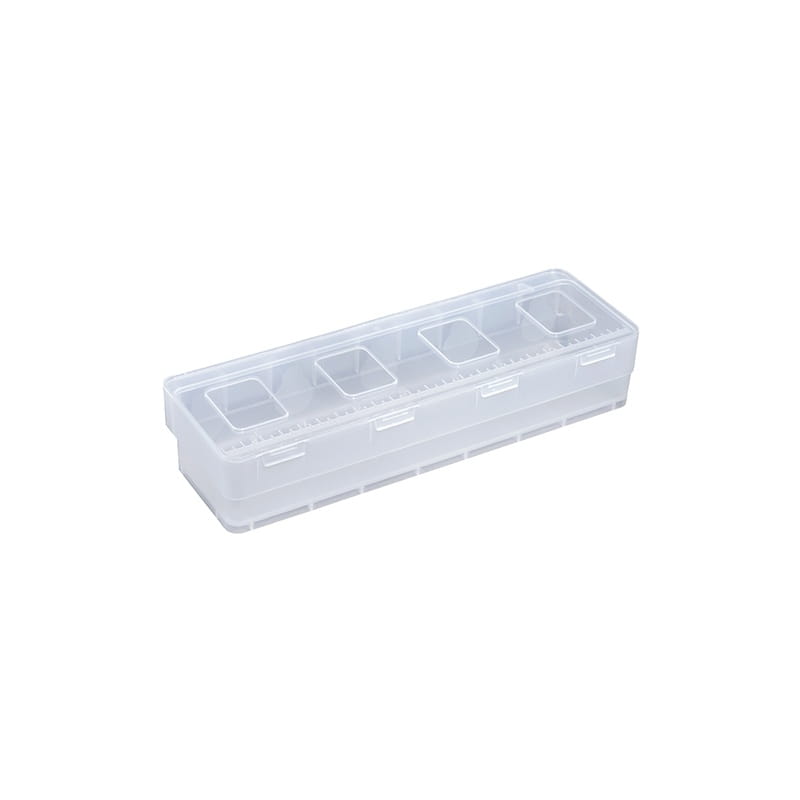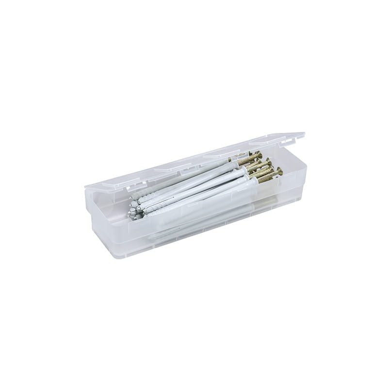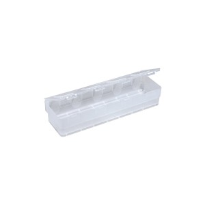 Poręczny organizer na drobne przedmioty typu, śrubki, nakrętki, idealny do zaprowadzenia porządku przy ogromie małych części. Całość wykonana jest z przezroczystego tworzywa sztucznego, dzięki czemu widzimy zawartość organizera bez otwierania, zaletą tego materiału jest również jego duża wytrzymałość. Produkt zamyka się na solidny klips, jest to prosty i tani sposób na zaprowadzenie porządku, można go wykorzystać nawet w walizkach oraz większych organizerach.